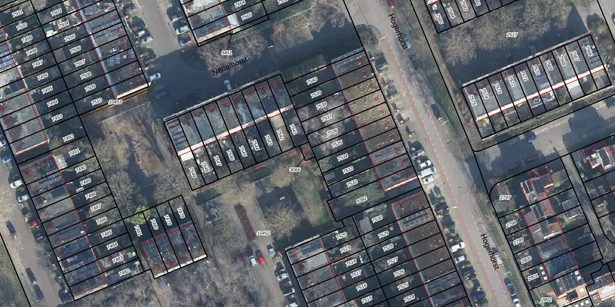 Gebruik de zoekbalk of klik op een perceel voor informatie over de adressen binnen dit perceel.
