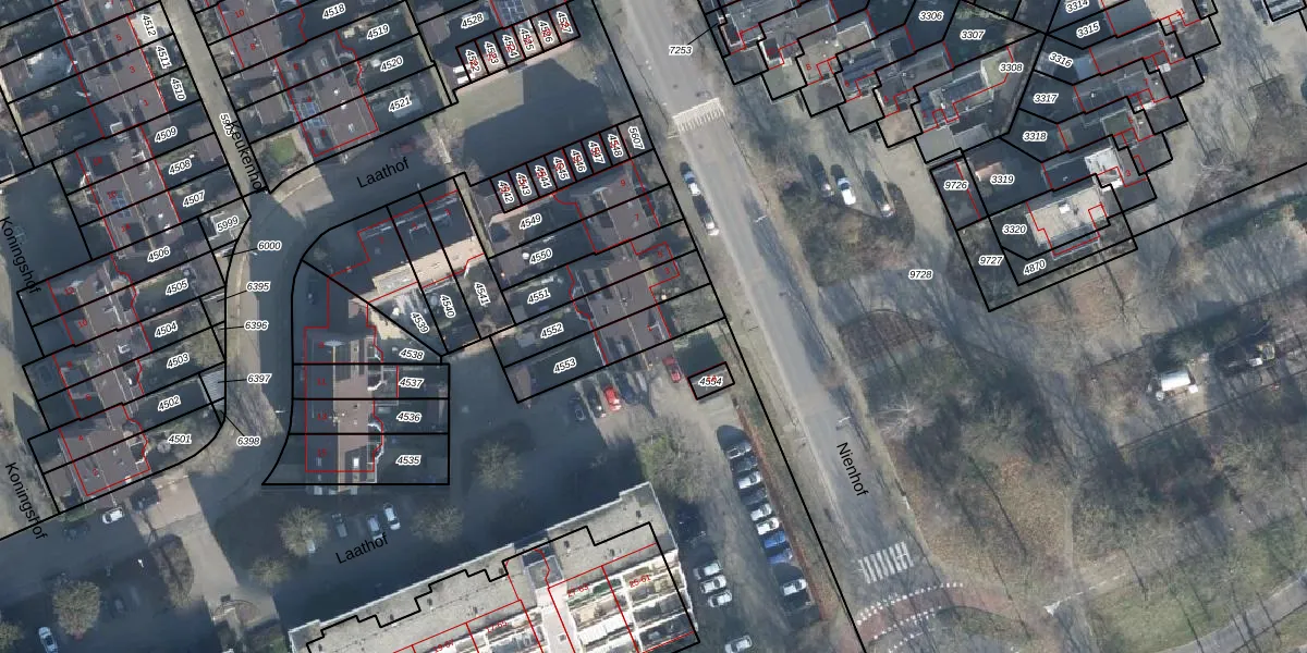 Gebruik de zoekbalk of klik op een perceel voor informatie over de adressen binnen dit perceel.
