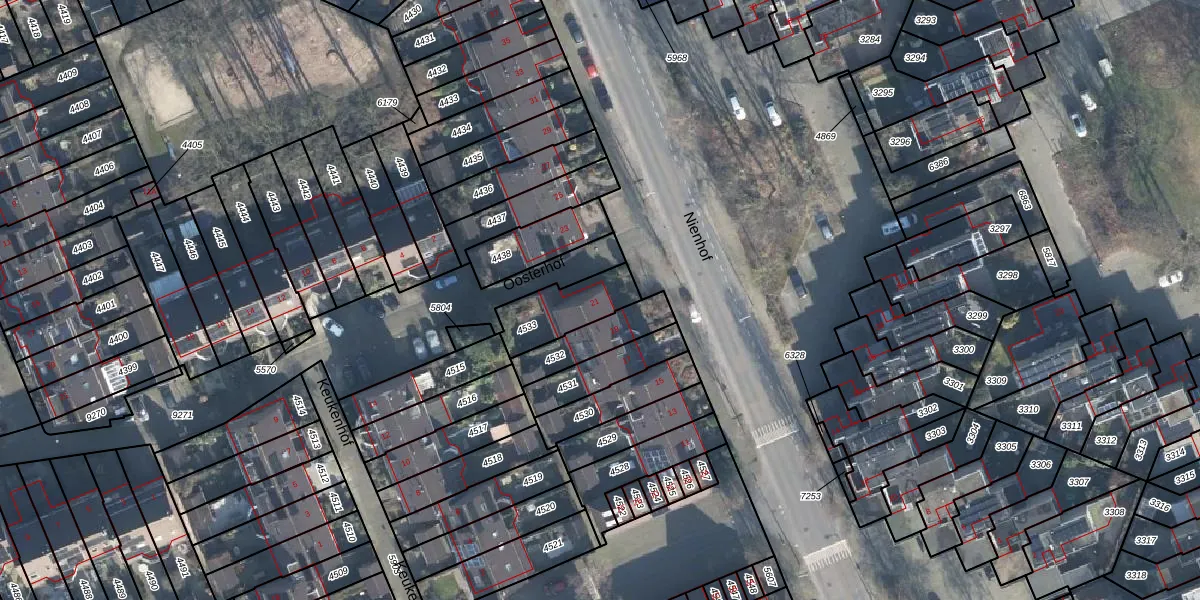 Het perceel waarop Nienhof 21 staat heeft een oppervlakte van 188 m². Dit is een middelgroot perceel. De perceeloppervlakte wordt geregistreerd door het Kadaster. Gedetailleerde informatie over de maten van dit perceel kunt u vinden in het rapport Kadastrale kaart met maatvoering van Nienhof 21.