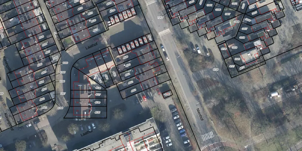 Gebruik de zoekbalk of klik op een perceel voor informatie over de adressen binnen dit perceel.