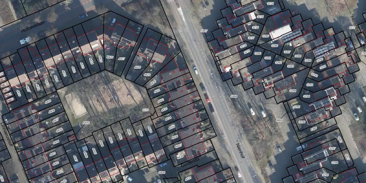 Gebruik de zoekbalk of klik op een perceel voor informatie over de adressen binnen dit perceel.