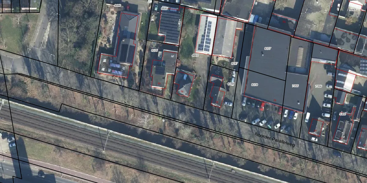 Noorder Parallelweg 19 is gelegen op kadastraal perceel EDE01D4861. Deze kadastrale aanduiding is uniek en wordt gebruikt door het Kadaster om eigendomsrechten en andere zakelijke rechten vast te leggen. Het perceel maakt onderdeel uit van de kadastrale gemeente Ede.