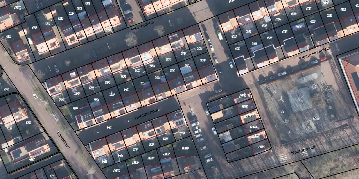 Gebruik de zoekbalk of klik op een perceel voor informatie over de adressen binnen dit perceel.