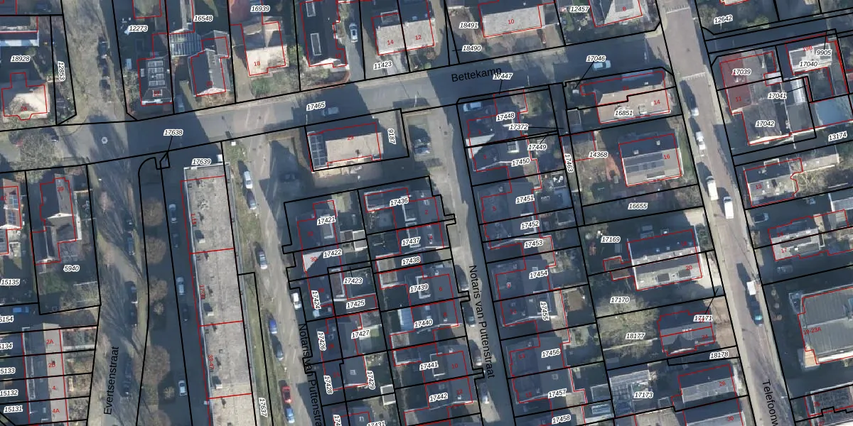 Het perceel waarop Notaris van Puttenstraat 2 staat heeft een oppervlakte van 200 m². Dit is een middelgroot perceel. De perceeloppervlakte wordt geregistreerd door het Kadaster. Gedetailleerde informatie over de maten van dit perceel kunt u vinden in het rapport Kadastrale kaart met maatvoering van Notaris van Puttenstraat 2.