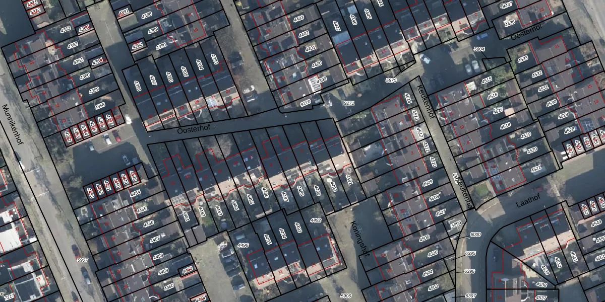Gebruik de zoekbalk of klik op een perceel voor informatie over de adressen binnen dit perceel.