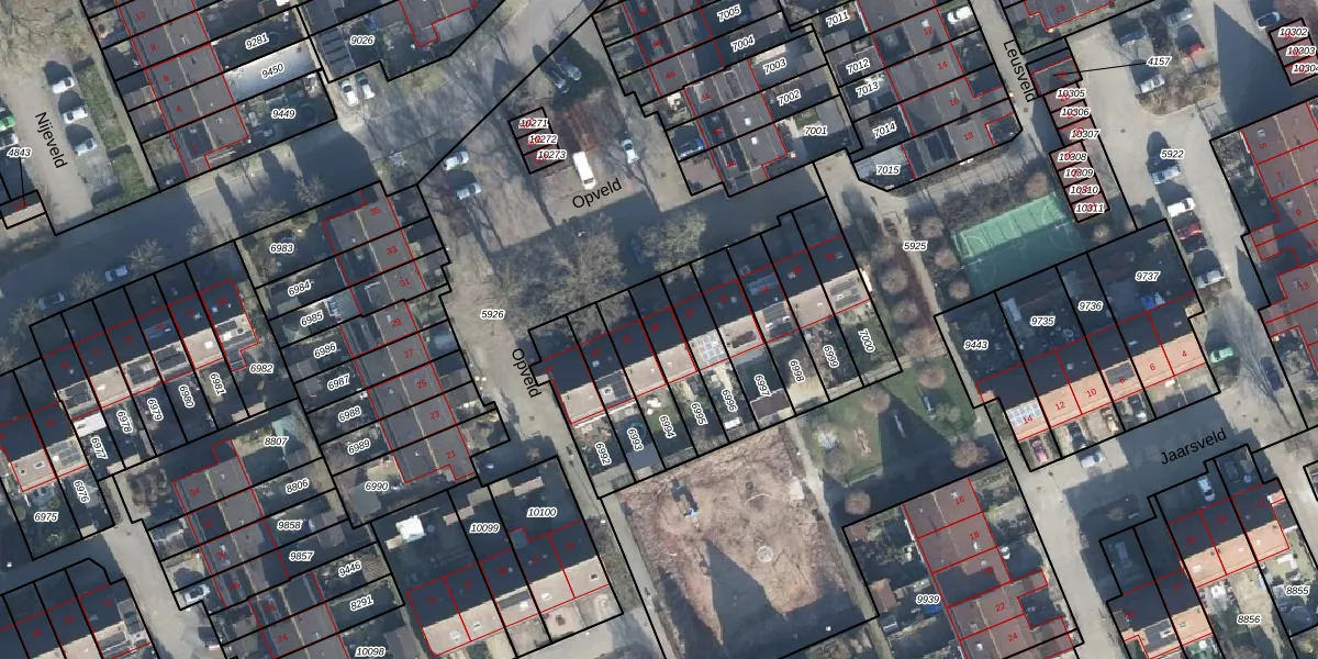 Het perceel waarop Opveld 28 staat heeft een oppervlakte van 140 m². Dit is een middelgroot perceel. De perceeloppervlakte wordt geregistreerd door het Kadaster. Gedetailleerde informatie over de maten van dit perceel kunt u vinden in het rapport Kadastrale kaart met maatvoering van Opveld 28.