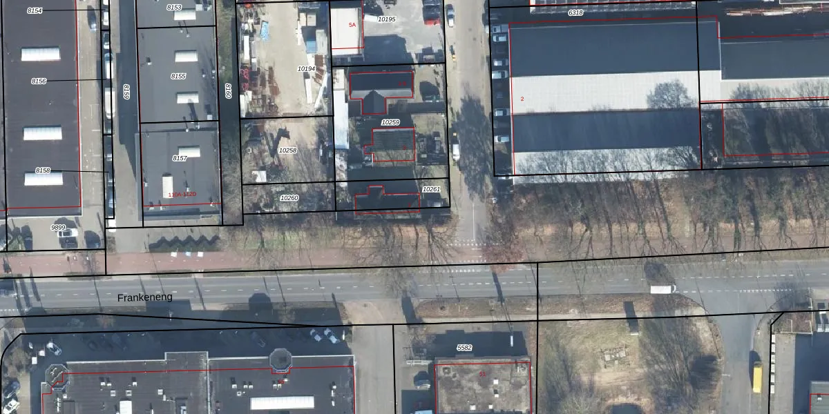 Gebruik de zoekbalk of klik op een perceel voor informatie over de adressen binnen dit perceel.