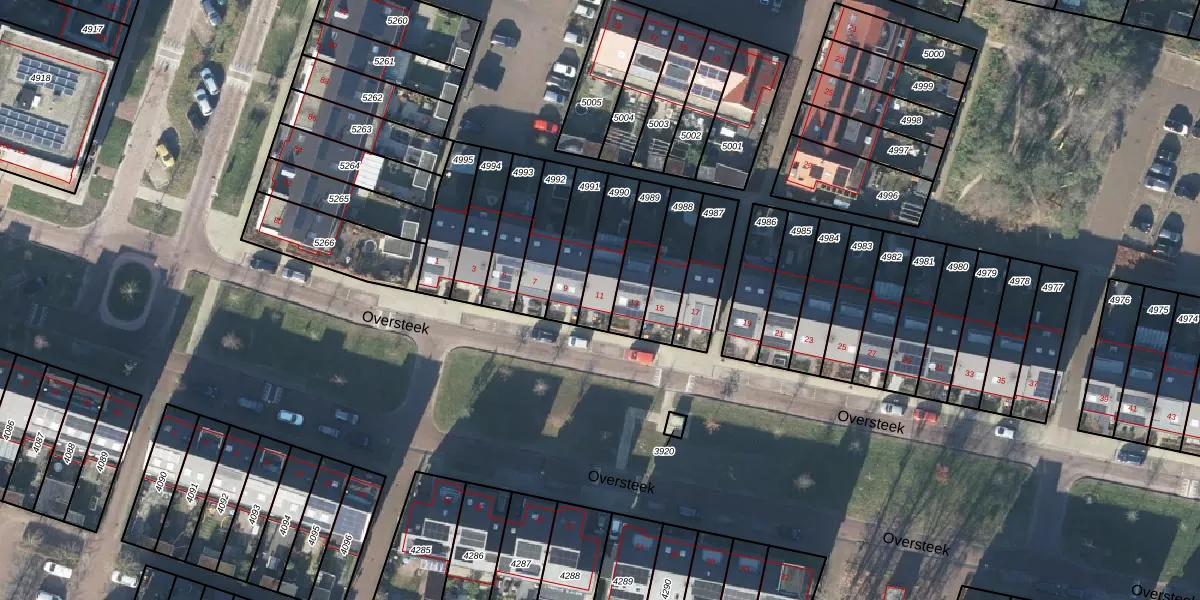 Gebruik de zoekbalk of klik op een perceel voor informatie over de adressen binnen dit perceel.
