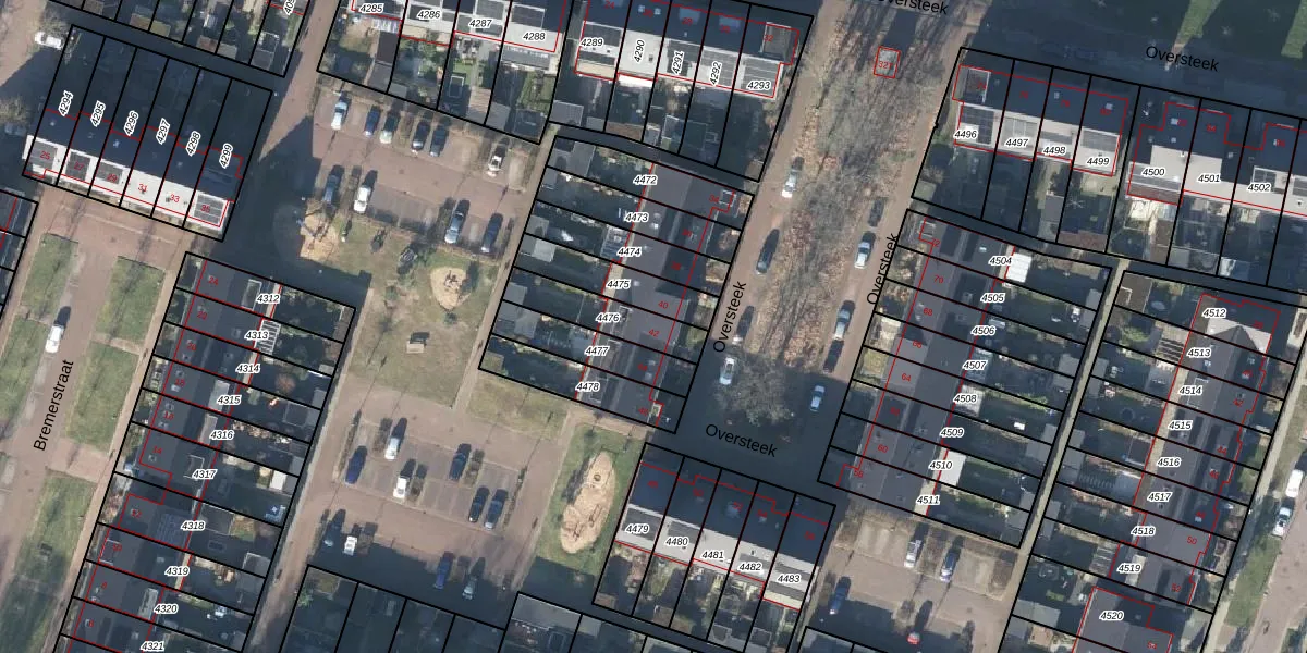 Gebruik de zoekbalk of klik op een perceel voor informatie over de adressen binnen dit perceel.