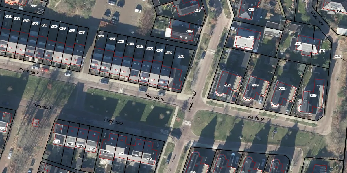 Gebruik de zoekbalk of klik op een perceel voor informatie over de adressen binnen dit perceel.