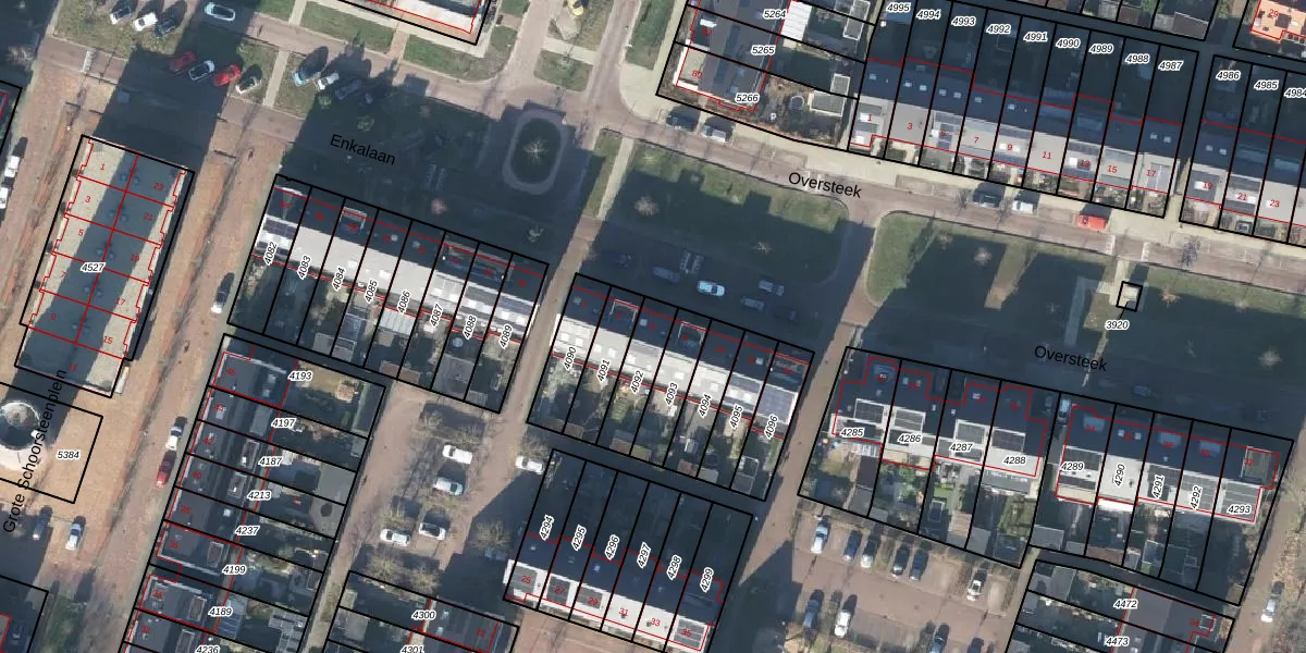 Gebruik de zoekbalk of klik op een perceel voor informatie over de adressen binnen dit perceel.