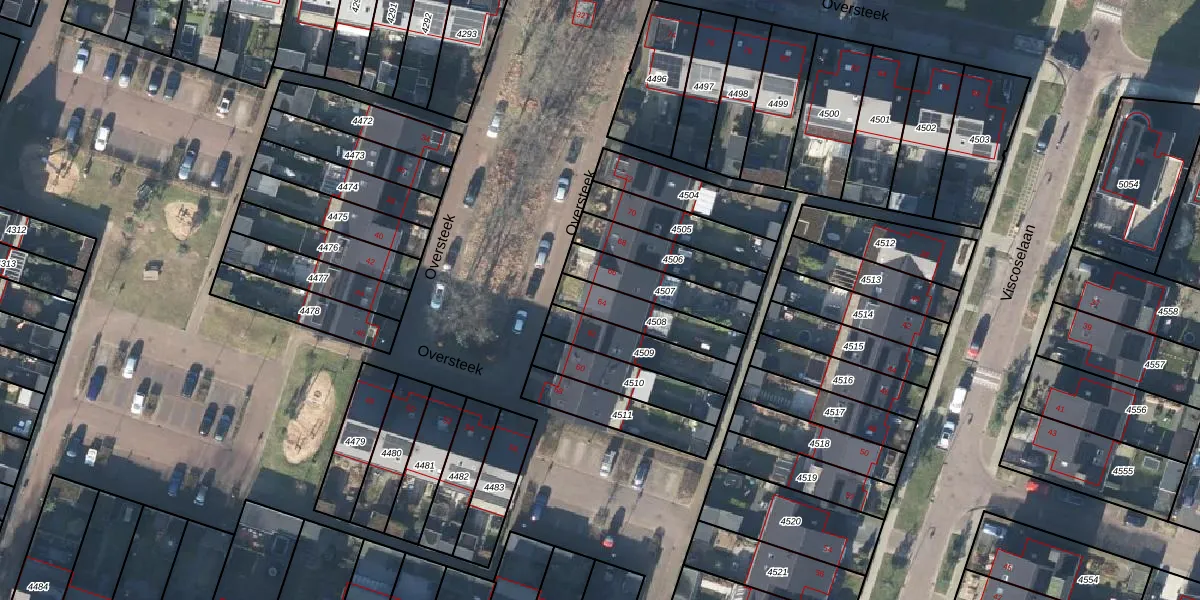 Gebruik de zoekbalk of klik op een perceel voor informatie over de adressen binnen dit perceel.