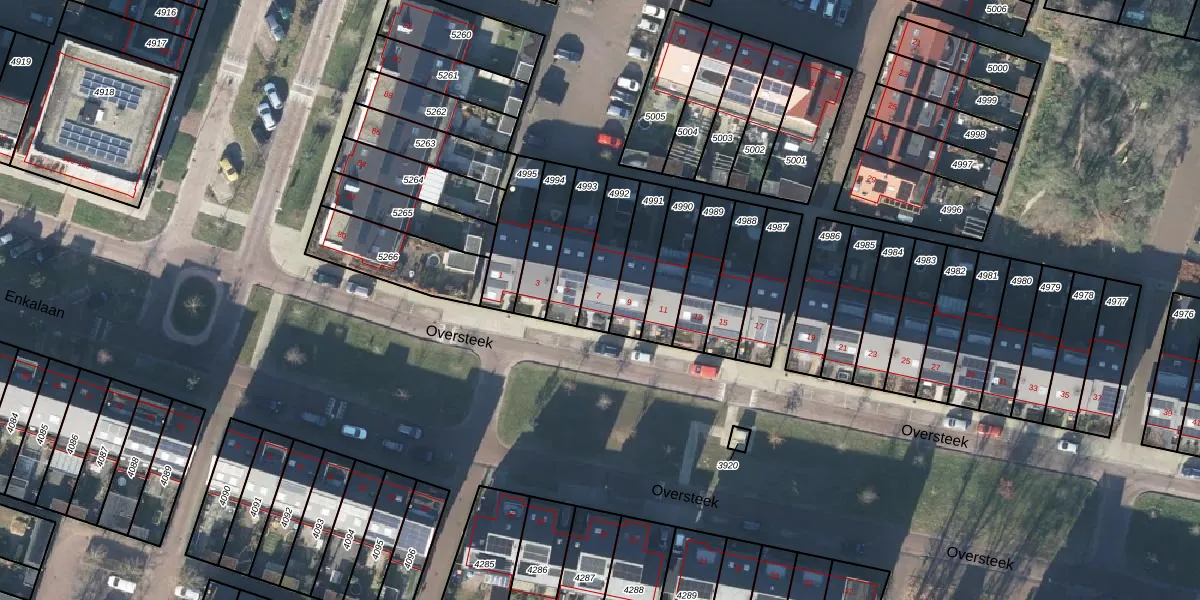 Gebruik de zoekbalk of klik op een perceel voor informatie over de adressen binnen dit perceel.