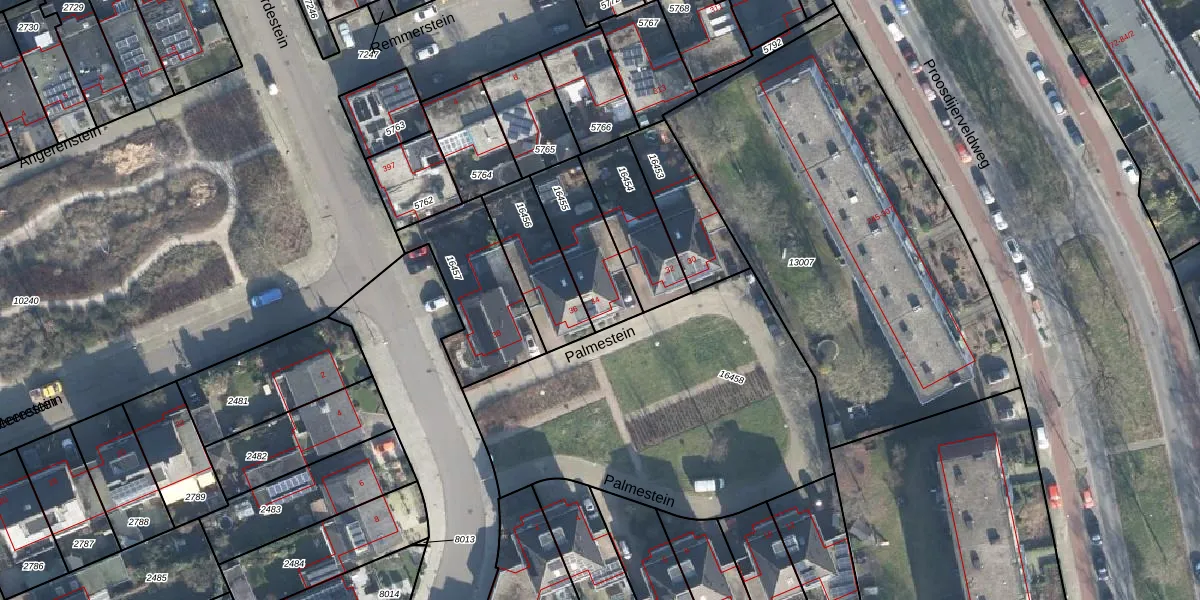 Het perceel waarop Palmestein 34 staat heeft een oppervlakte van 247 m². Dit is een middelgroot perceel. De perceeloppervlakte wordt geregistreerd door het Kadaster. Gedetailleerde informatie over de maten van dit perceel kunt u vinden in het rapport Kadastrale kaart met maatvoering van Palmestein 34.