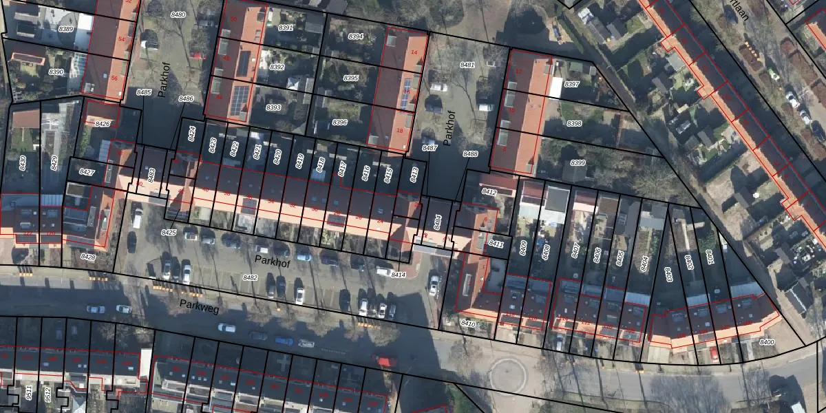 Het perceel waarop Parkhof 20 staat heeft een oppervlakte van 86 m². Dit is een klein perceel. De perceeloppervlakte wordt geregistreerd door het Kadaster. Gedetailleerde informatie over de maten van dit perceel kunt u vinden in het rapport Kadastrale kaart met maatvoering van Parkhof 20.