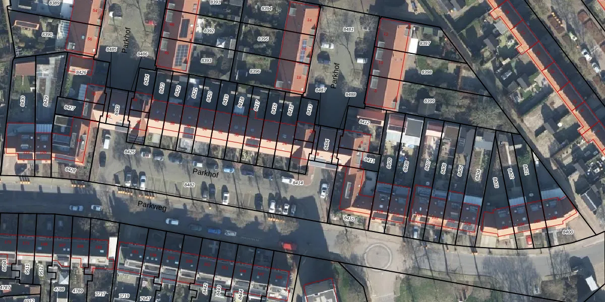Het perceel waarop Parkhof 22 staat heeft een oppervlakte van 66 m². Dit is een klein perceel. De perceeloppervlakte wordt geregistreerd door het Kadaster. Gedetailleerde informatie over de maten van dit perceel kunt u vinden in het rapport Kadastrale kaart met maatvoering van Parkhof 22.