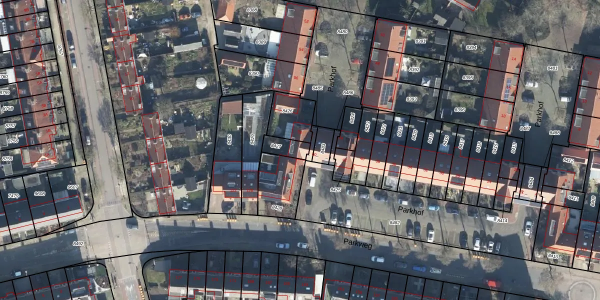 Het perceel waarop Parkhof 60 staat heeft een oppervlakte van 90 m². Dit is een klein perceel. De perceeloppervlakte wordt geregistreerd door het Kadaster. Gedetailleerde informatie over de maten van dit perceel kunt u vinden in het rapport Kadastrale kaart met maatvoering van Parkhof 60.