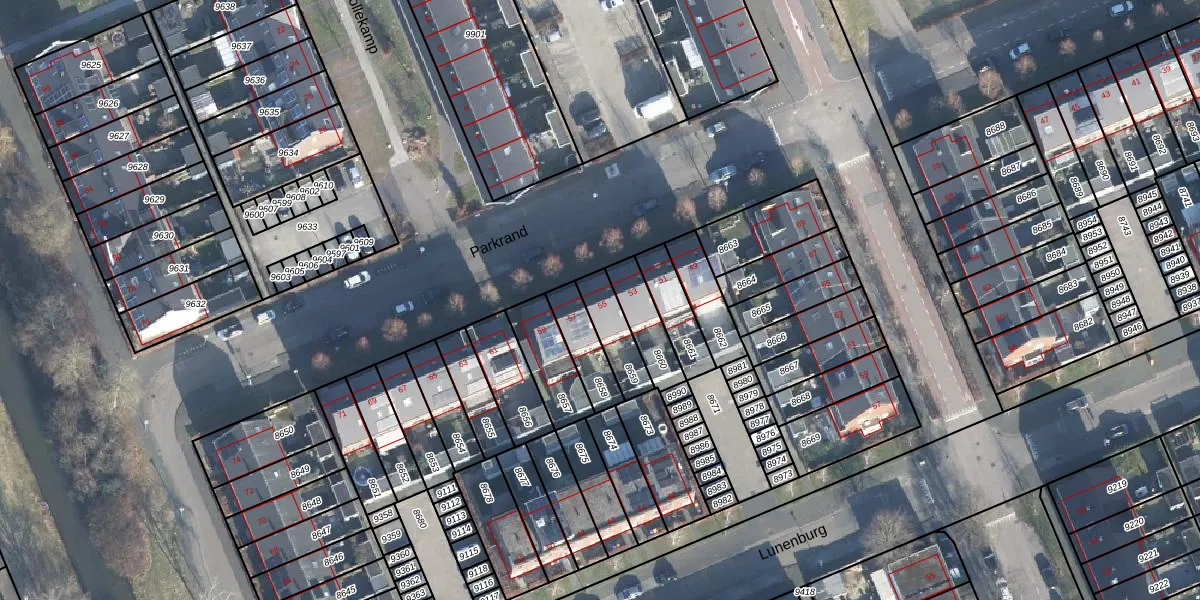 Het perceel waarop Parkrand 55 staat heeft een oppervlakte van 122 m². Dit is een middelgroot perceel. De perceeloppervlakte wordt geregistreerd door het Kadaster. Gedetailleerde informatie over de maten van dit perceel kunt u vinden in het rapport Kadastrale kaart met maatvoering van Parkrand 55.