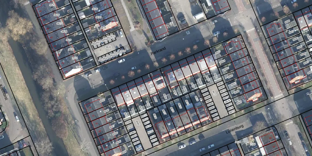 Gebruik de zoekbalk of klik op een perceel voor informatie over de adressen binnen dit perceel.