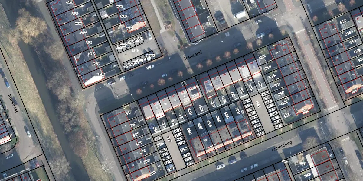 Gebruik de zoekbalk of klik op een perceel voor informatie over de adressen binnen dit perceel.