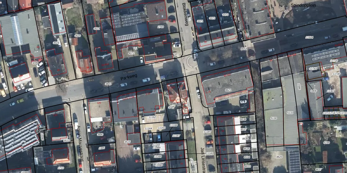 Gebruik de zoekbalk of klik op een perceel voor informatie over de adressen binnen dit perceel.