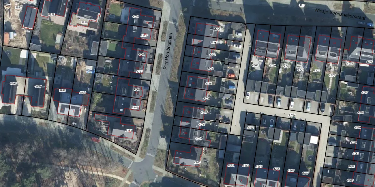 Piet Romboutlaan 53 is gelegen op kadastraal perceel EDE01C4756. Deze kadastrale aanduiding is uniek en wordt gebruikt door het Kadaster om eigendomsrechten en andere zakelijke rechten vast te leggen. Het perceel maakt onderdeel uit van de kadastrale gemeente Ede.
