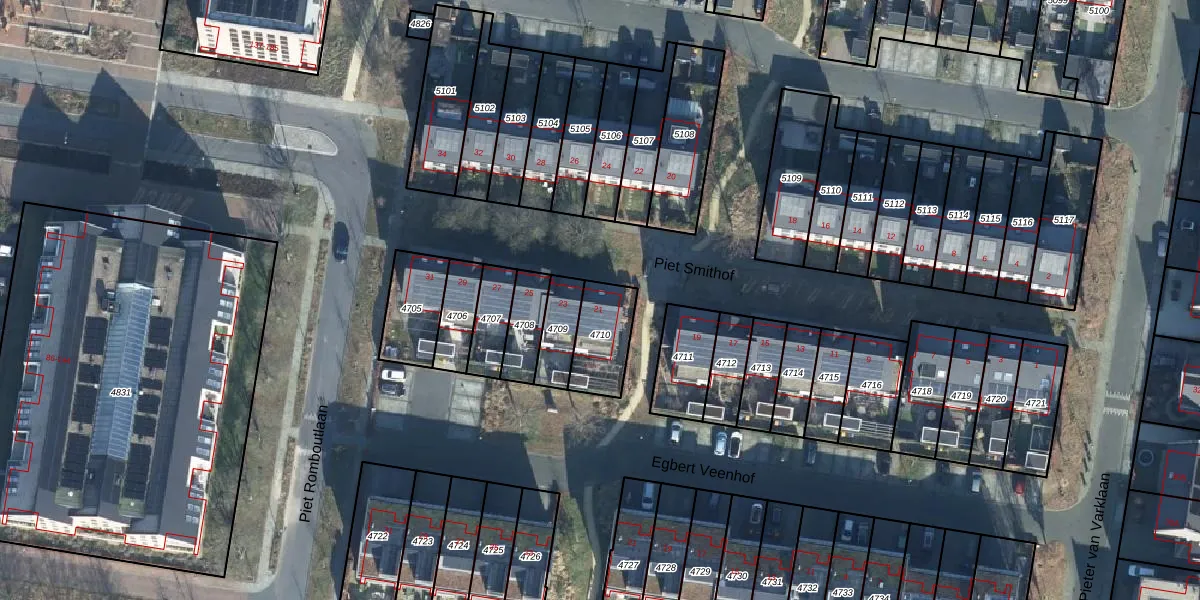 Het perceel waarop Piet Smithof 21 staat heeft een oppervlakte van 165 m². Dit is een middelgroot perceel. De perceeloppervlakte wordt geregistreerd door het Kadaster. Gedetailleerde informatie over de maten van dit perceel kunt u vinden in het rapport Kadastrale kaart met maatvoering van Piet Smithof 21.