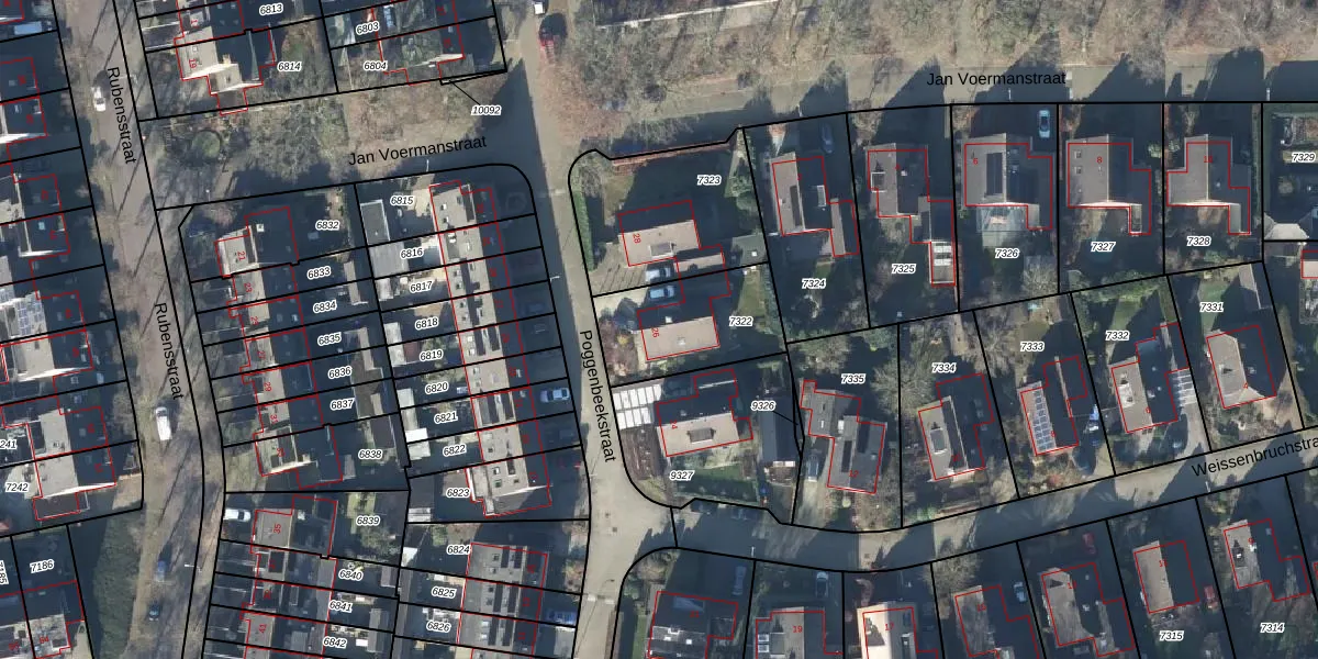 Het perceel waarop Poggenbeekstraat 26 staat heeft een oppervlakte van 385 m². Dit is een groot perceel. De perceeloppervlakte wordt geregistreerd door het Kadaster. Gedetailleerde informatie over de maten van dit perceel kunt u vinden in het rapport Kadastrale kaart met maatvoering van Poggenbeekstraat 26.