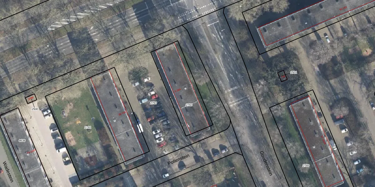 Het perceel waarop Pollenstein 16 staat heeft een oppervlakte van 774 m². Dit is een groot perceel. De perceeloppervlakte wordt geregistreerd door het Kadaster. Gedetailleerde informatie over de maten van dit perceel kunt u vinden in het rapport Kadastrale kaart met maatvoering van Pollenstein 16.