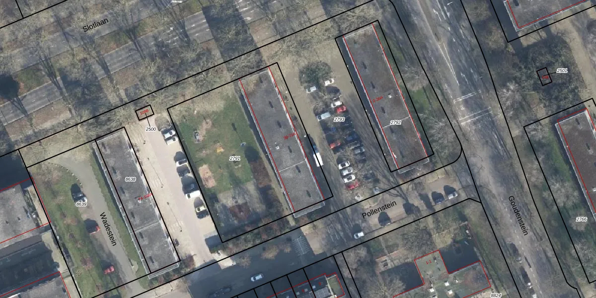 Het perceel waarop Pollenstein 50-A staat heeft een oppervlakte van 1947 m². Dit is een zeer groot perceel. De perceeloppervlakte wordt geregistreerd door het Kadaster. Gedetailleerde informatie over de maten van dit perceel kunt u vinden in het rapport Kadastrale kaart met maatvoering van Pollenstein 50-A.