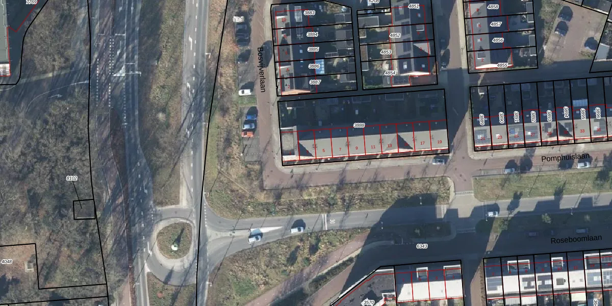 Pomphuislaan 3 is gelegen op kadastraal perceel EDE01C3888. Deze kadastrale aanduiding is uniek en wordt gebruikt door het Kadaster om eigendomsrechten en andere zakelijke rechten vast te leggen. Het perceel maakt onderdeel uit van de kadastrale gemeente Ede.