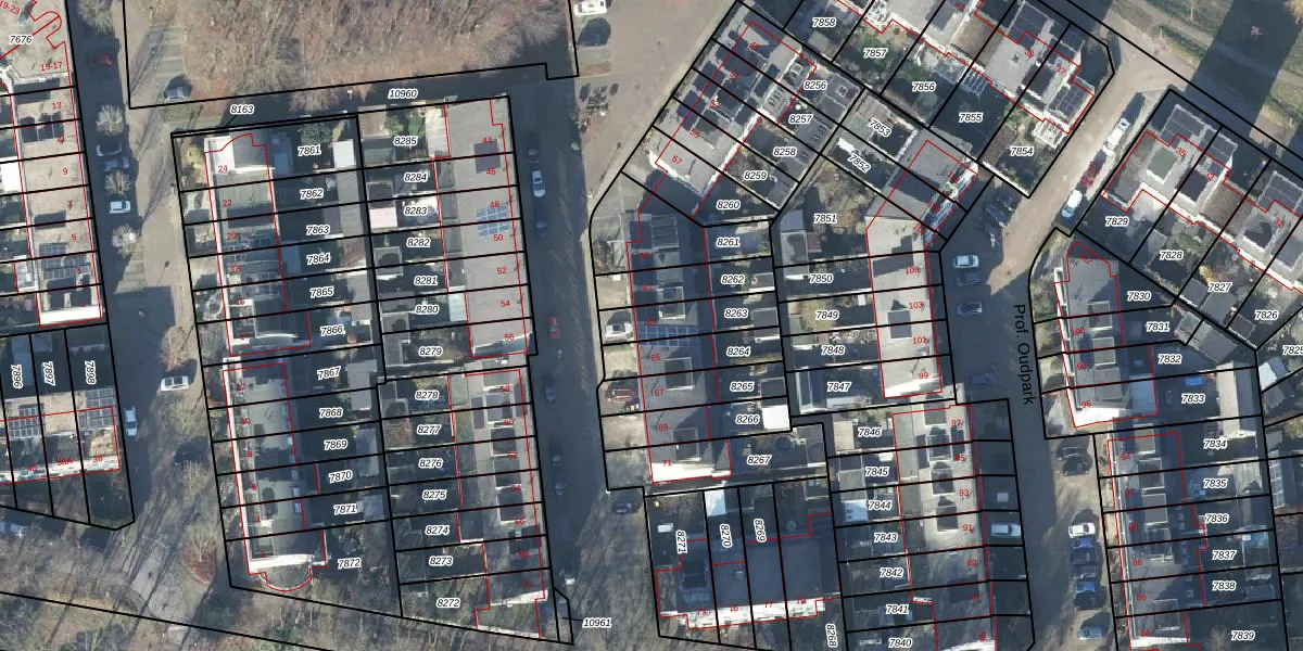 Prof. Oudpark 63 is gelegen op kadastraal perceel EDE01D8263. Deze kadastrale aanduiding is uniek en wordt gebruikt door het Kadaster om eigendomsrechten en andere zakelijke rechten vast te leggen. Het perceel maakt onderdeel uit van de kadastrale gemeente Ede.