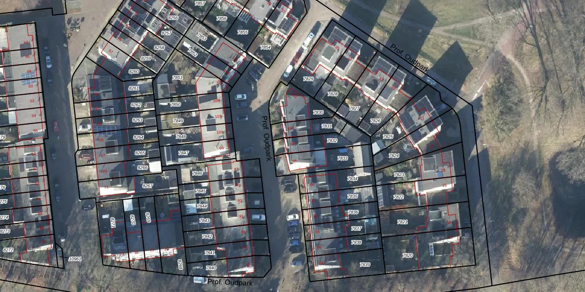 Het perceel waarop Prof. Oudpark 98 staat heeft een oppervlakte van 185 m². Dit is een middelgroot perceel. De perceeloppervlakte wordt geregistreerd door het Kadaster. Gedetailleerde informatie over de maten van dit perceel kunt u vinden in het rapport Kadastrale kaart met maatvoering van Prof. Oudpark 98.