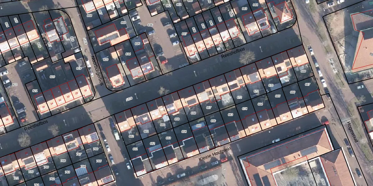 Reeshofbos 15 is gelegen op kadastraal perceel EDE01N658. Deze kadastrale aanduiding is uniek en wordt gebruikt door het Kadaster om eigendomsrechten en andere zakelijke rechten vast te leggen. Het perceel maakt onderdeel uit van de kadastrale gemeente Ede.