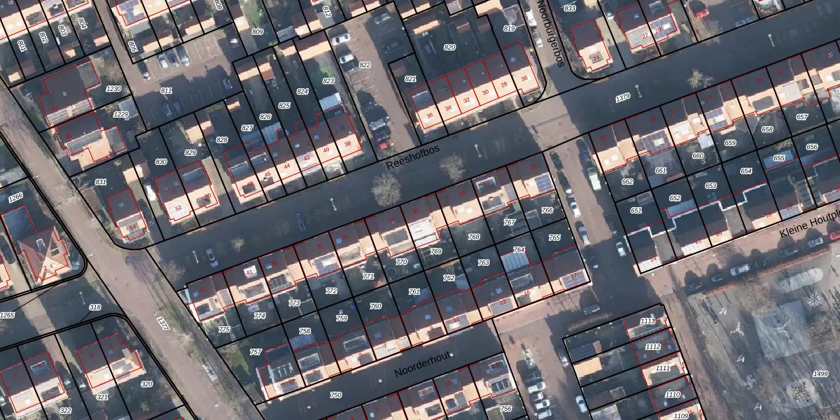 Gebruik de zoekbalk of klik op een perceel voor informatie over de adressen binnen dit perceel.