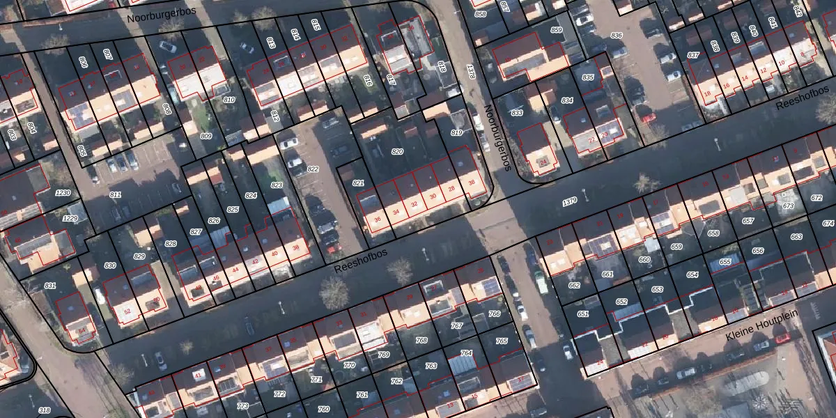 Het perceel waarop Reeshofbos 32 staat heeft een oppervlakte van 542 m². Dit is een groot perceel. De perceeloppervlakte wordt geregistreerd door het Kadaster. Gedetailleerde informatie over de maten van dit perceel kunt u vinden in het rapport Kadastrale kaart met maatvoering van Reeshofbos 32.