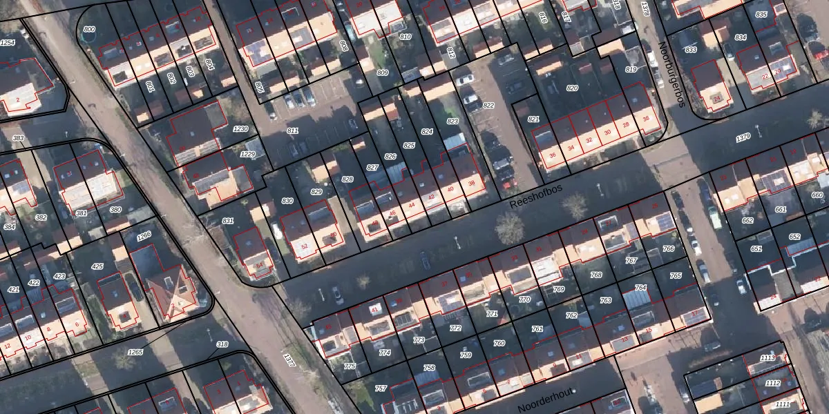 Het perceel waarop Reeshofbos 44 staat heeft een oppervlakte van 178 m². Dit is een middelgroot perceel. De perceeloppervlakte wordt geregistreerd door het Kadaster. Gedetailleerde informatie over de maten van dit perceel kunt u vinden in het rapport Kadastrale kaart met maatvoering van Reeshofbos 44.