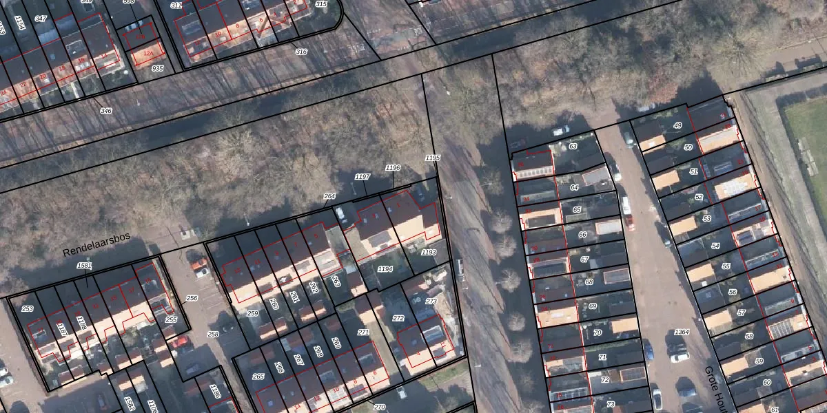 Het perceel waarop Rendelaarsbos 1 staat heeft een oppervlakte van 246 m². Dit is een middelgroot perceel. De perceeloppervlakte wordt geregistreerd door het Kadaster. Gedetailleerde informatie over de maten van dit perceel kunt u vinden in het rapport Kadastrale kaart met maatvoering van Rendelaarsbos 1.