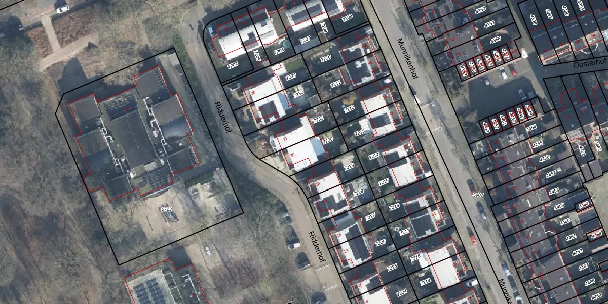 Het perceel waarop Ridderhof 20 staat heeft een oppervlakte van 223 m². Dit is een middelgroot perceel. De perceeloppervlakte wordt geregistreerd door het Kadaster. Gedetailleerde informatie over de maten van dit perceel kunt u vinden in het rapport Kadastrale kaart met maatvoering van Ridderhof 20.