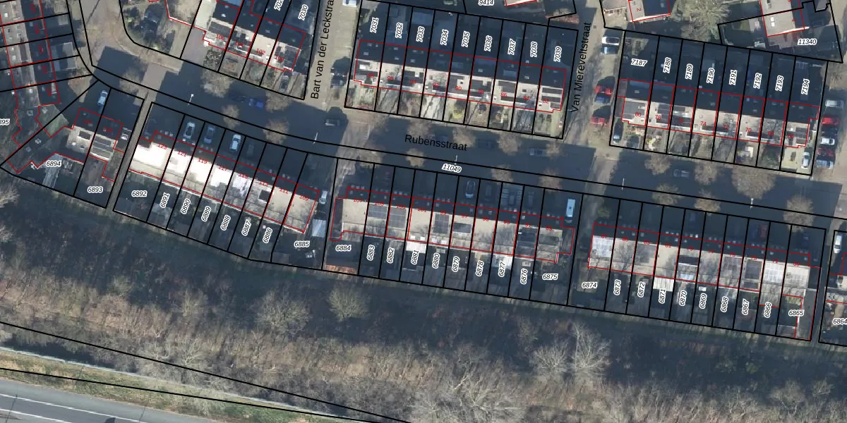 Het perceel waarop Rubensstraat 101 staat heeft een oppervlakte van 136 m². Dit is een middelgroot perceel. De perceeloppervlakte wordt geregistreerd door het Kadaster. Gedetailleerde informatie over de maten van dit perceel kunt u vinden in het rapport Kadastrale kaart met maatvoering van Rubensstraat 101.