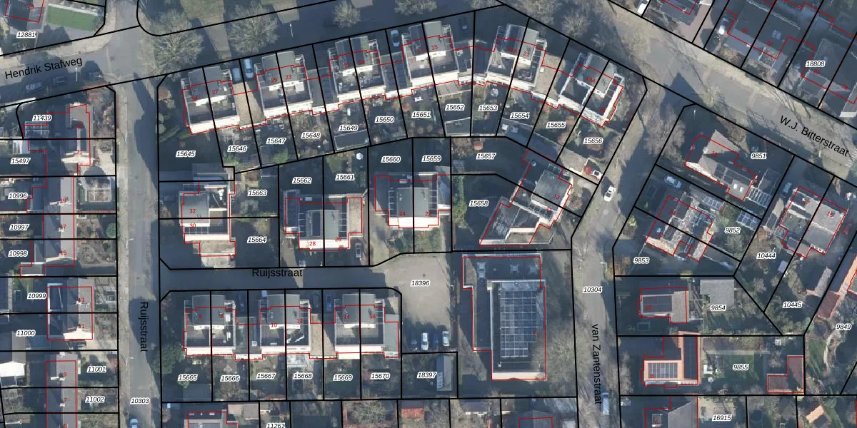 Het perceel waarop Ruijsstraat 22 staat heeft een oppervlakte van 239 m². Dit is een middelgroot perceel. De perceeloppervlakte wordt geregistreerd door het Kadaster. Gedetailleerde informatie over de maten van dit perceel kunt u vinden in het rapport Kadastrale kaart met maatvoering van Ruijsstraat 22.