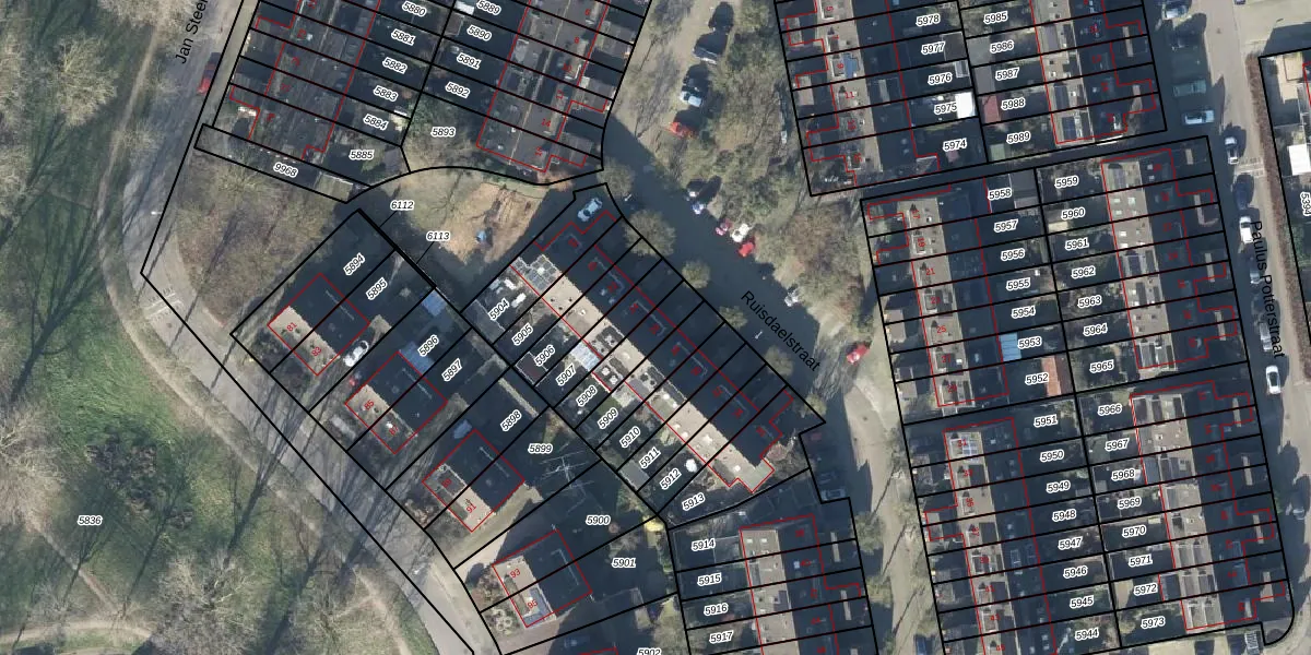 Het perceel waarop Ruisdaelstraat 26 staat heeft een oppervlakte van 126 m². Dit is een middelgroot perceel. De perceeloppervlakte wordt geregistreerd door het Kadaster. Gedetailleerde informatie over de maten van dit perceel kunt u vinden in het rapport Kadastrale kaart met maatvoering van Ruisdaelstraat 26.