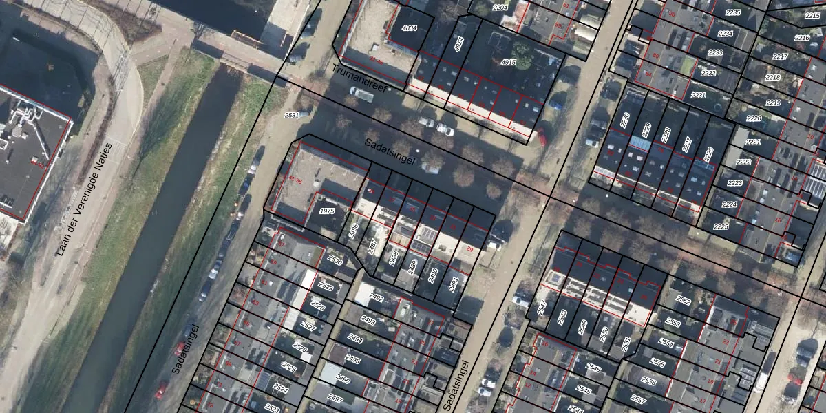 Het perceel waarop Sadatsingel 35 staat heeft een oppervlakte van 136 m². Dit is een middelgroot perceel. De perceeloppervlakte wordt geregistreerd door het Kadaster. Gedetailleerde informatie over de maten van dit perceel kunt u vinden in het rapport Kadastrale kaart met maatvoering van Sadatsingel 35.