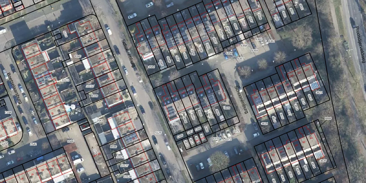 Gebruik de zoekbalk of klik op een perceel voor informatie over de adressen binnen dit perceel.