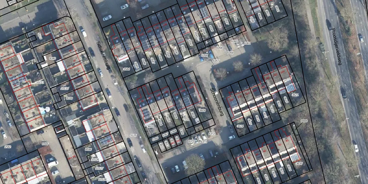 Gebruik de zoekbalk of klik op een perceel voor informatie over de adressen binnen dit perceel.