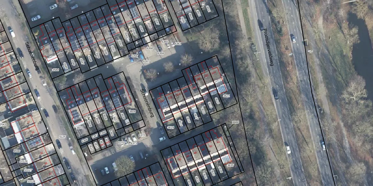 Gebruik de zoekbalk of klik op een perceel voor informatie over de adressen binnen dit perceel.