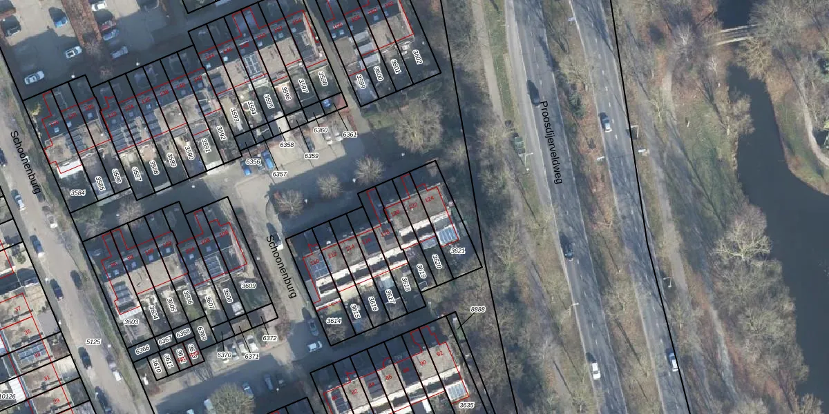 Het perceel waarop Schoonenburg 122 staat heeft een oppervlakte van 126 m². Dit is een middelgroot perceel. De perceeloppervlakte wordt geregistreerd door het Kadaster. Gedetailleerde informatie over de maten van dit perceel kunt u vinden in het rapport Kadastrale kaart met maatvoering van Schoonenburg 122.
