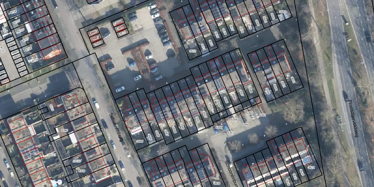 Gebruik de zoekbalk of klik op een perceel voor informatie over de adressen binnen dit perceel.