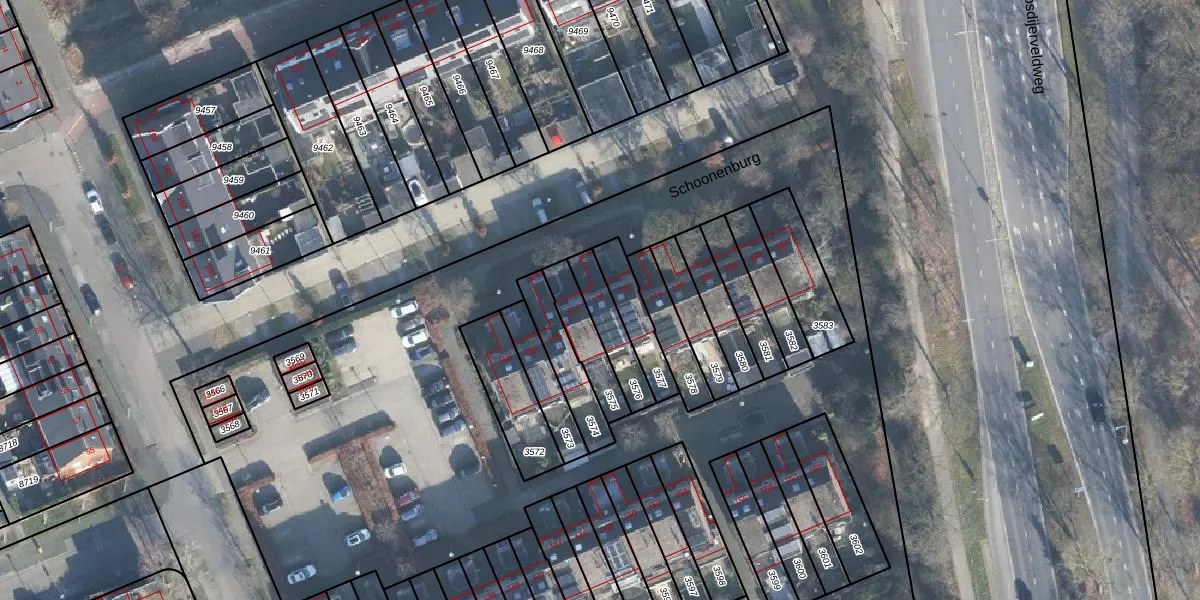 Het perceel waarop Schoonenburg 174 staat heeft een oppervlakte van 126 m². Dit is een middelgroot perceel. De perceeloppervlakte wordt geregistreerd door het Kadaster. Gedetailleerde informatie over de maten van dit perceel kunt u vinden in het rapport Kadastrale kaart met maatvoering van Schoonenburg 174.