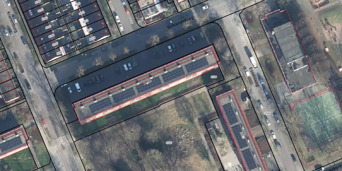 Het perceel waarop Schoonenburg 42 staat heeft een oppervlakte van 1955 m². Dit is een zeer groot perceel. De perceeloppervlakte wordt geregistreerd door het Kadaster. Gedetailleerde informatie over de maten van dit perceel kunt u vinden in het rapport Kadastrale kaart met maatvoering van Schoonenburg 42.